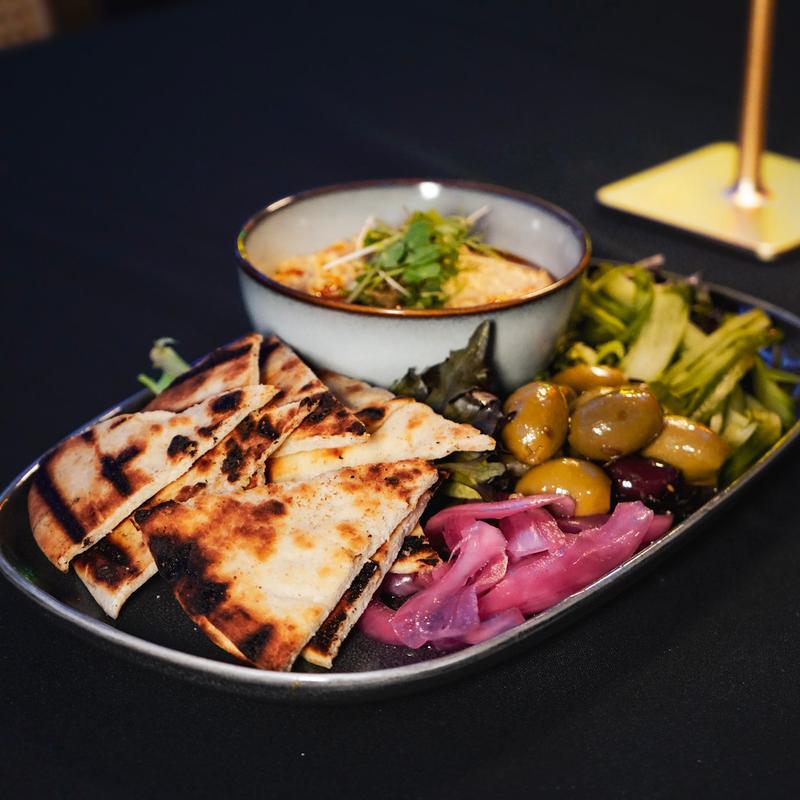 Creamy hummus, marinated olives, cucumber, pickled onions, grilled pita