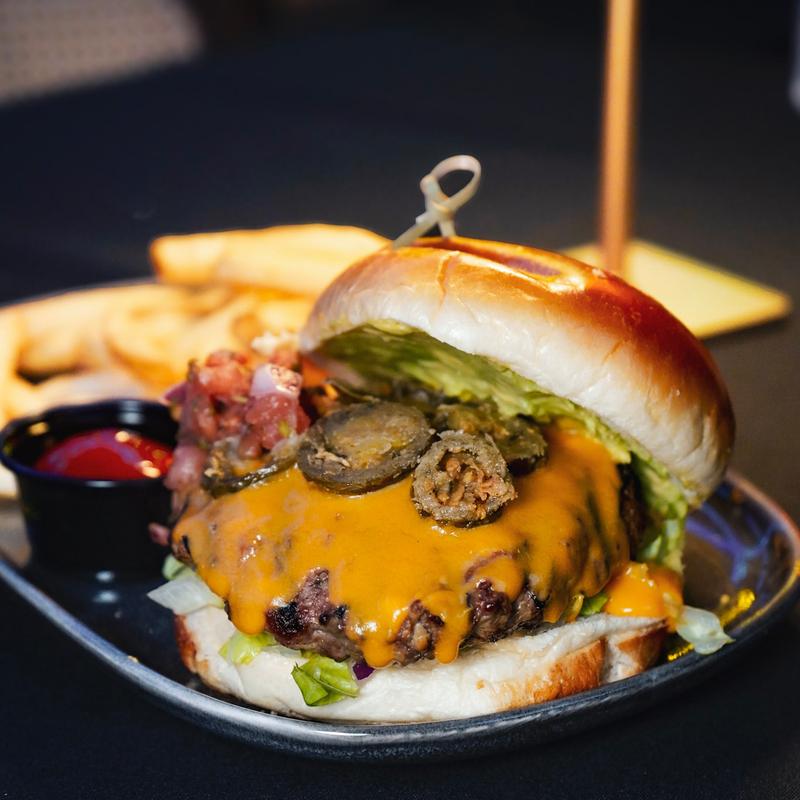 Lettuce, pico de gallo, fried jalapenos, queso, chatpata avocado. Served with fries
